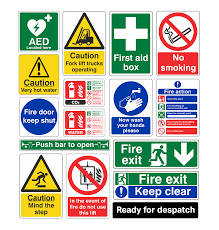 Industrial safety signboard with warning symbols used at construction or factory sites in the UAE